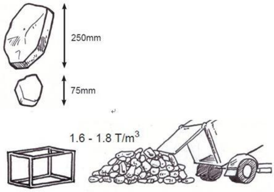 高爾凡格賓網(wǎng)箱內填充的石料應堅固、經用、不易碎,石頭的巨細應在250mm到75mm之間,也即是一般國際上所說的4-6英寸石。
