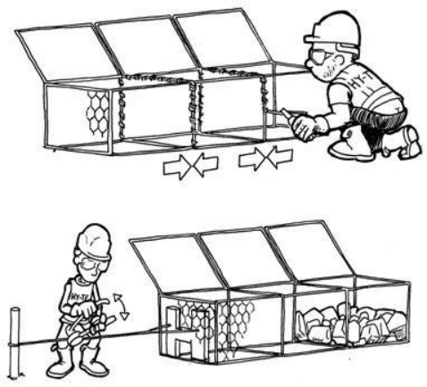 高爾凡格賓網(wǎng)被運到施工工地時,是若干個網(wǎng)格賓網(wǎng)施工圖解