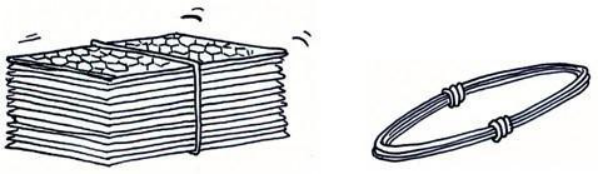 高爾凡格賓網(wǎng)被運到施工工地時,是若干個網(wǎng)箱被打成一大包。剪斷綁絲,取出所需的獨立的格賓網(wǎng)箱。(綁絲由廠家一起供給)